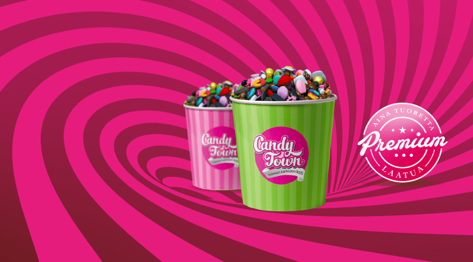 CandyTownMakeisten sekoitussuhde saattaa vaihdella. 2-laatu. (FI) Glukoosisiirappi, glukoosi-fruktoosisiirappi, sokeri, happamuudensäätöaineet: (E330 (sitru...