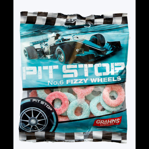 GrahnsPit Stop Fizzy Wheels on kupliva ja raikas makeinen, joka tuo mieleen autoteeman ja vauhdin. Sen kupliva rakenne ja kirpeä maku tekevät siitä hausk...