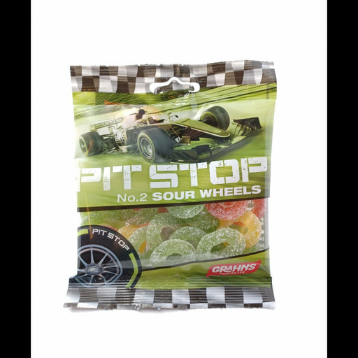 GrahnsPit Stop Sour Wheels on raikas ja kirpeä makeinen, joka yhdistää happamat maut ja herkullisen makeuden. Sen pyöreät, värikkäät renkaat tarjoavat ha...